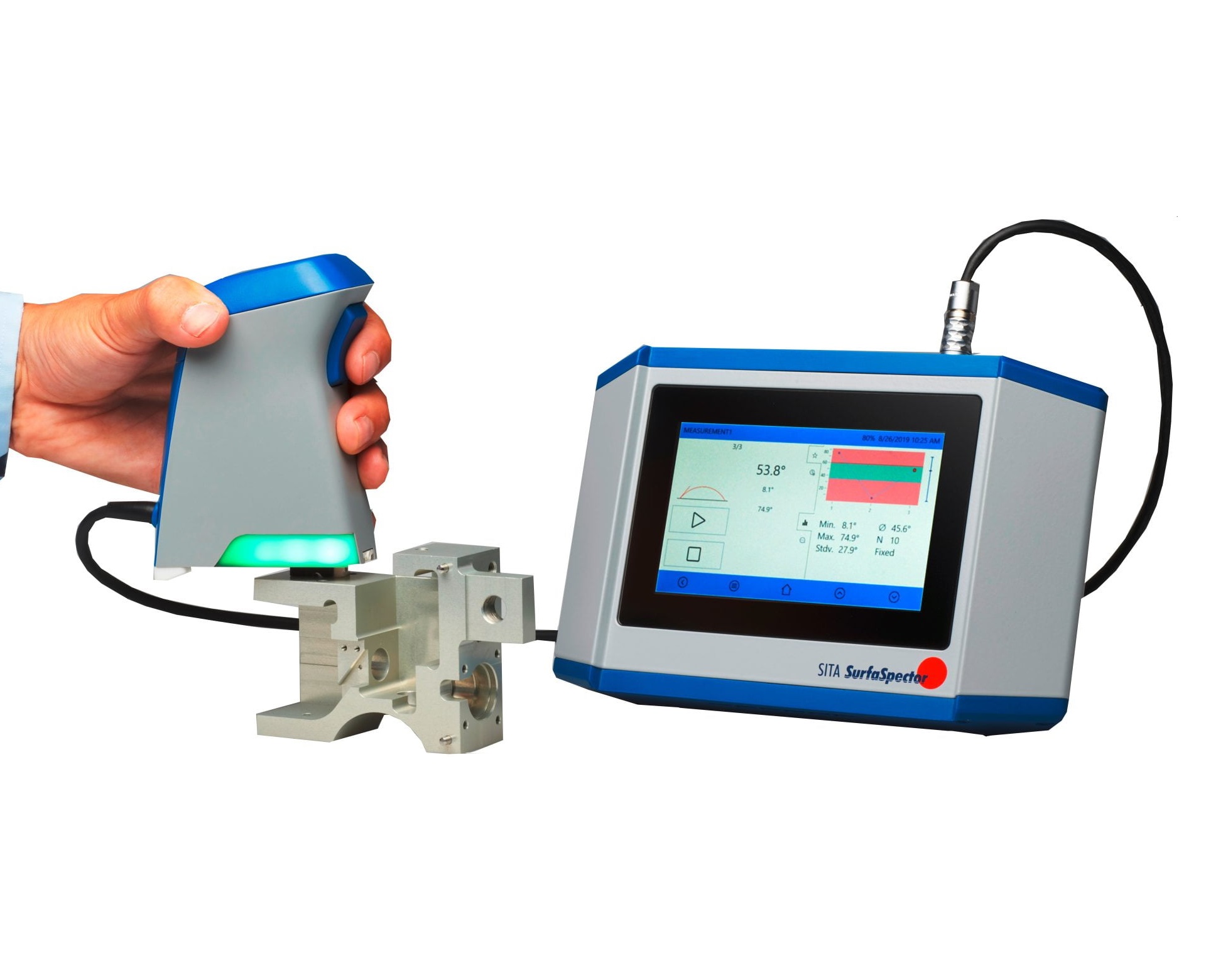 德國SITA SurfaSpector接觸角測量儀是一款新型手持式接觸角測量儀,可測試金屬、玻璃和塑料經(jīng)過處理或清洗后的表面潤濕性。該儀器結(jié)合了客觀測量和簡單處理模式,實(shí)現(xiàn)快速測量評估表面性能。